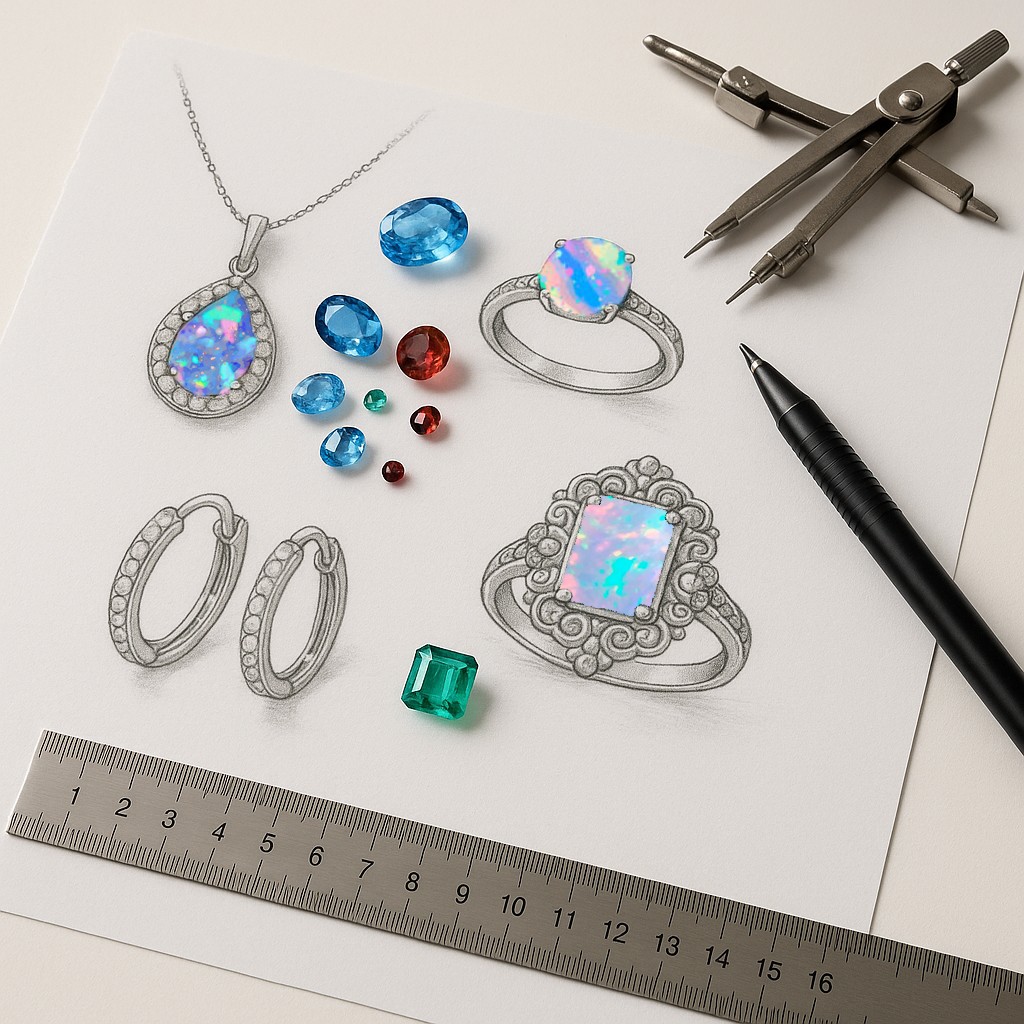 At Amechi, we do everything in our power to make sure our clients receive opal jewelry that exceeds their expectations. In order to achieve that goal, clients can buy finished pieces from our collection, or opt for an in-depth customization process. Clients can select their own opal from our inventory, and then select their favorite design style from any piece in our collections to act as inspiration. Then, our jewelry designers customize the style to the client's opal through a multi-step iteration process to complete the design. Our skilled jewelry craftsmen bring this collaborative design to life, producing a piece of unique jewelry.
