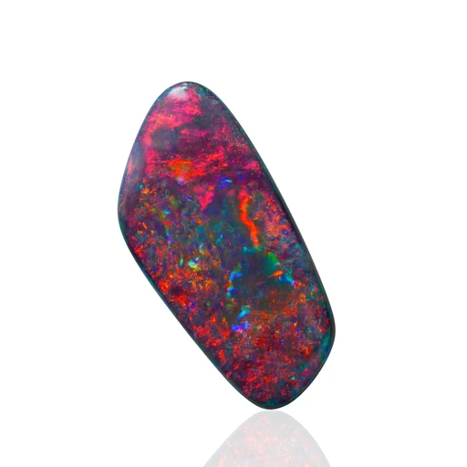 Australian boulder opals are prized for their natural rarity and unique formation that gives them a striking visual appeal. Unlike opals mined from loose deposits, these gems form within natural ironstone boulders and retain a piece of that host rock, lending each stone an unmistakable, organic character. The dark, weathered ironstone provides a dramatic, earthy backdrop to the opal’s brilliant flashes of color, which can range from deep, fiery reds and vivid blues to subtle hints of green.